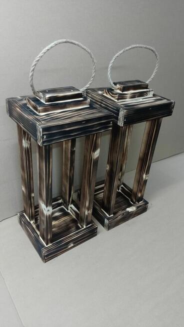 Lampion drewniany ok 36cm wysoki, podstawy ok 14x14cm. OPALANY. Oferuję własnoręcznie wykonane lampiony z drewna po ...